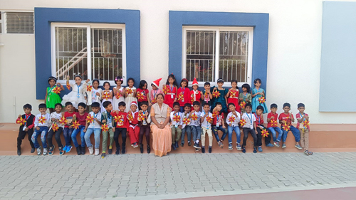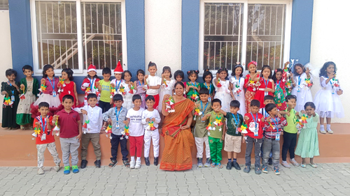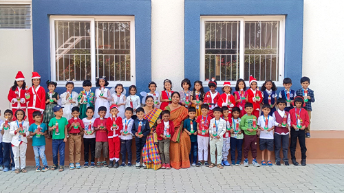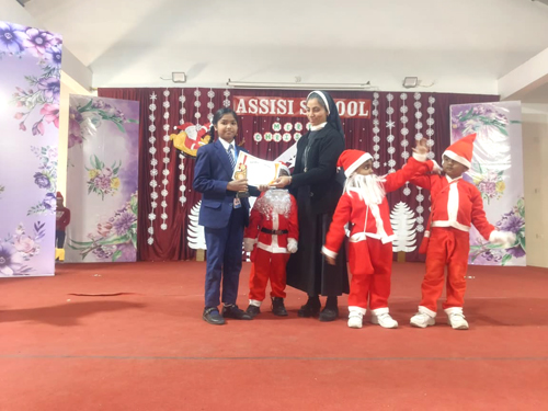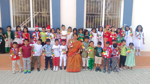The Pre-Christmas Celebration was joyfully held on 18th December for students from Pre-KG to Grade 4. The programme was filled with festive cheer and enthusiasm. The children spread the spirit of Christmas through melodious carol singing, delightful performances by Santa Claus and angels, and a meaningful skit that conveyed the true message of Christmas.